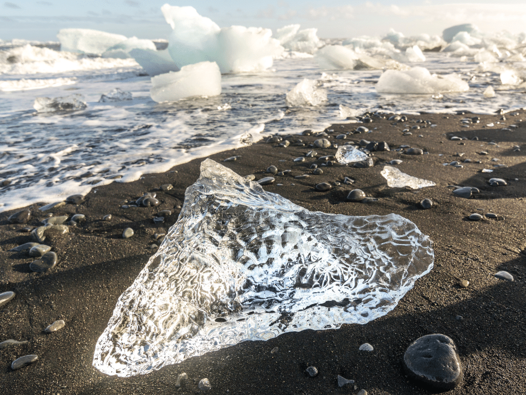 Many of the ice chunks end up on the black-as-coal beach, making it look like enormous shimmering diamonds sitting on the volcanic sand. The ice chunks come in all kinds of unique shapes and sizes thanks to the natural artistic sculpting abilities of the waves.