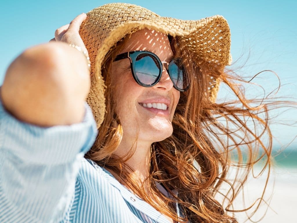 Meanwhile, sunglasses should offer up effective protection from UVB and UVA rays. A wide brim hat will provide even more sun protection for your face, ears, and neck.