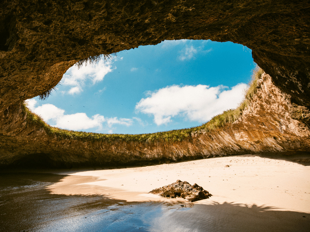 Mexico’s Marieta Islands are home to a hidden beach that lies beneath the surface of one of the islands. Referred to by most as Hidden Beach, it also goes by the name Playa del Amor, and exists within a giant crater in the ground.